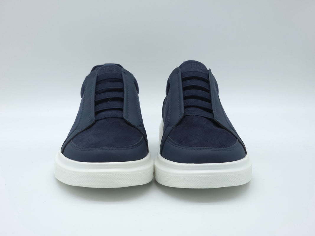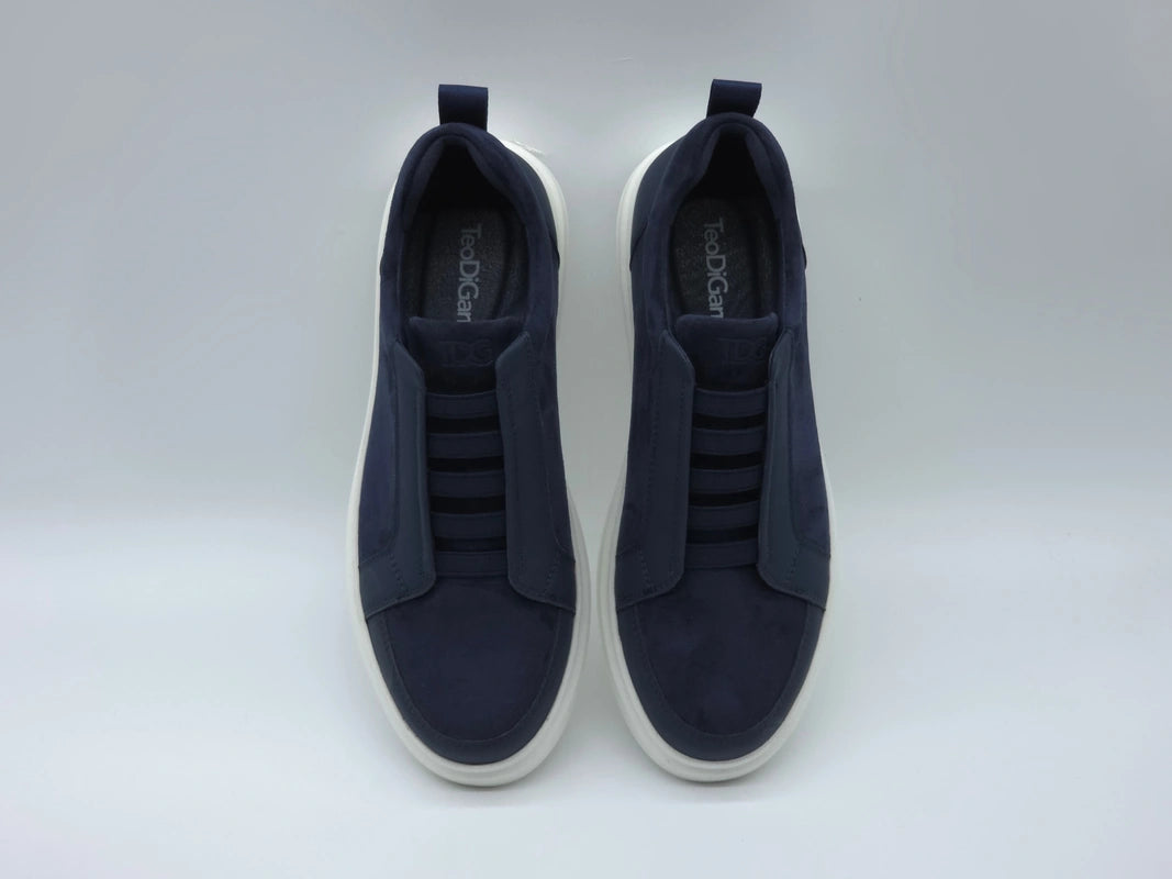 Teo Flo definiuje na nowo koncepcję nowoczesnego slip-ona, łącząc łatwość zakładania z estetyką high-end. Cholewka wykonana z flaneli premium posiada unikalny system elastycznego sznurowania, który zapewnia idealne dopasowanie bez konieczności wiązania. Głęboki odcień granatu i miękka tekstura stanowią wyrafinowaną alternatywę dla tradycyjnych sneakersów. Osadzone na stabilnej podeszwie PU i dopełnione oryginalną wkładką z logo, model Flo to ostateczny wybór dla osób ceniących czas, wygodę i płynne przejście od obowiązków zawodowych do wolnego czasu.